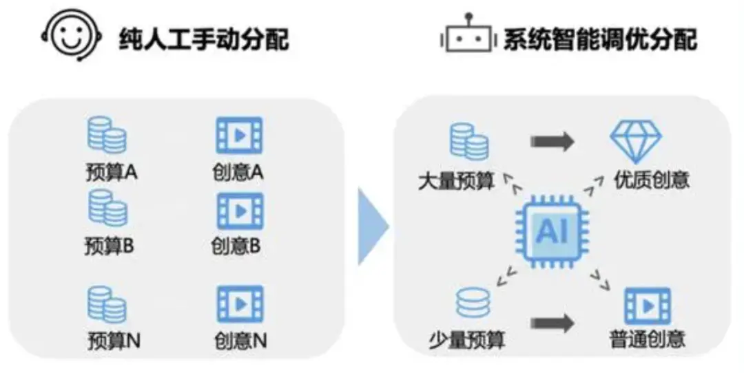 智能化營銷的到來,摒棄了過去漏斗式的結(jié)構(gòu),用端到端的方式讓整個(gè)廣告系統(tǒng)變的更直接,中間的創(chuàng)意、決策過程都交給大模型,用扁平的方式減少成本消耗。
