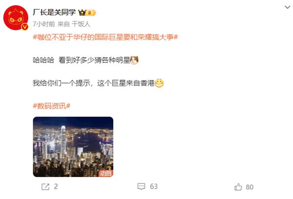 日前,數(shù)碼博主 " 廠長(zhǎng)是關(guān)同學(xué) " 爆料,榮耀將與一位國(guó)際巨星合作,咖位不亞于劉德華。