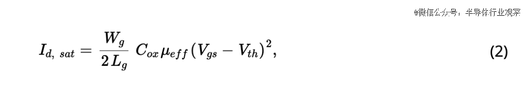 對于遷移率不依賴于柵極電壓或串聯電阻的理想 MOSFET,可以使用飽和區的二次模型計算有效電子遷移率 µeff,如下所示: