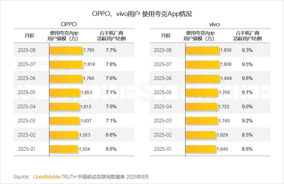 QuestMobile數據顯示,2025年8月,OPPO的小布記憶應用月活躍用戶規模是AI語音摘記的2倍;vivo的小V記憶應用是小V幫記的1.2倍。