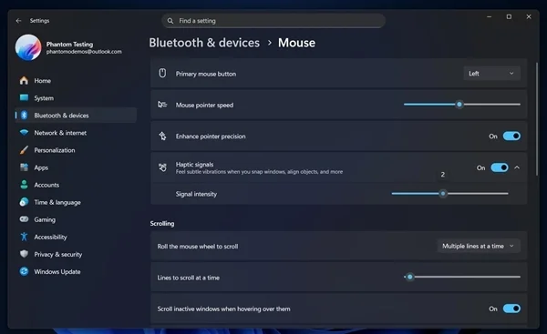 11月11日消息,在最新的Windows11Build7070(Dev和Beta頻道)中,用戶發現為微軟正在為各種系統操作添加觸覺反饋功能。